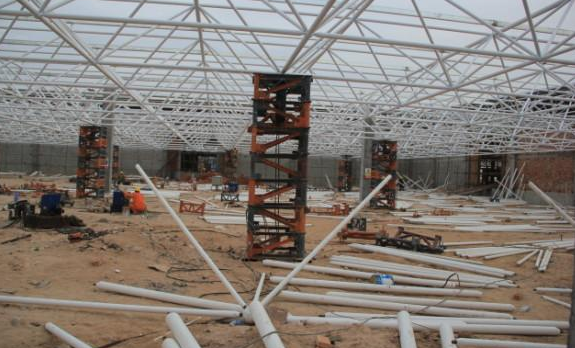 5)总体晋职法:此步履多使用在周边支护以及有多点支护的网架结构,可采取平板升降机、液压千斤顶等小型机具作业盐城施工;